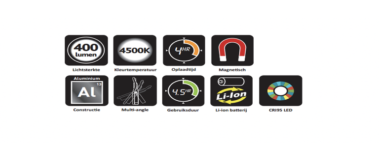 De lamp heeft ook een hol ontwerp, dat de lens beschermt tegen schade. Dankzij de geïntegreerde magneet, de ophanghaak en de verstelbare handgreep kun je de inspectielamp ook handsfree gebruiken.